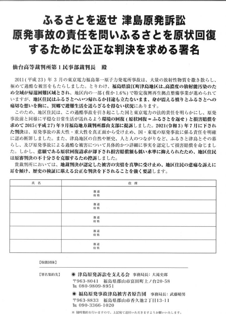 浪江町津島地区の住民によって構成される原告団を全力でサポートします。